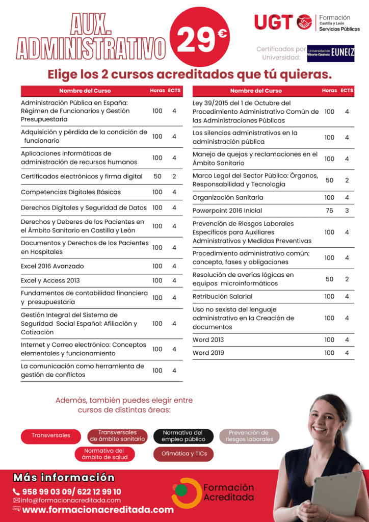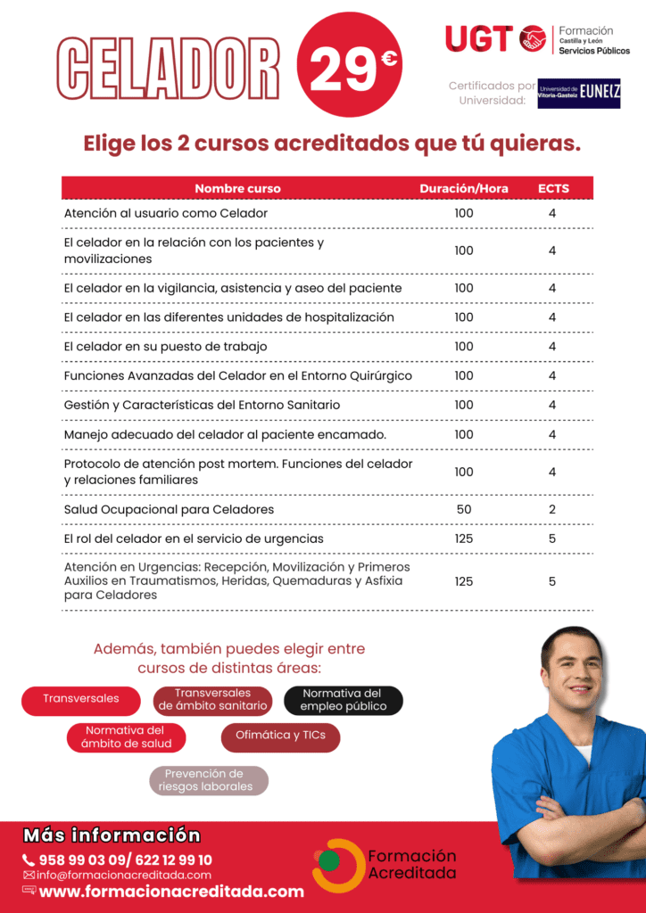 Cursos de Formación Acreditada para TCAE, Auxiliar Administrativo y Celador.