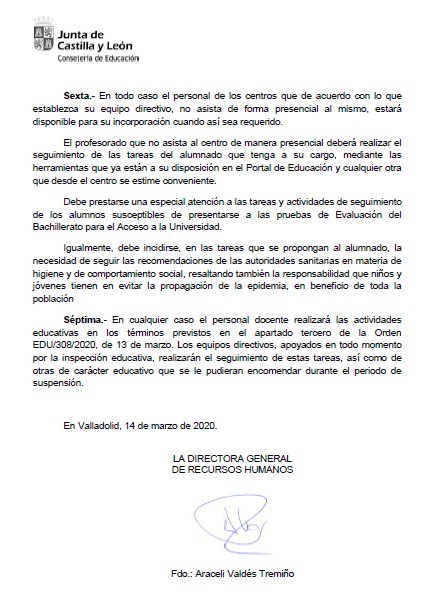 INSTRUCCIÓN DE RRHH SOBRE LA SUSPENSIÓN DE LA ACTIVIDAD DOCENTE